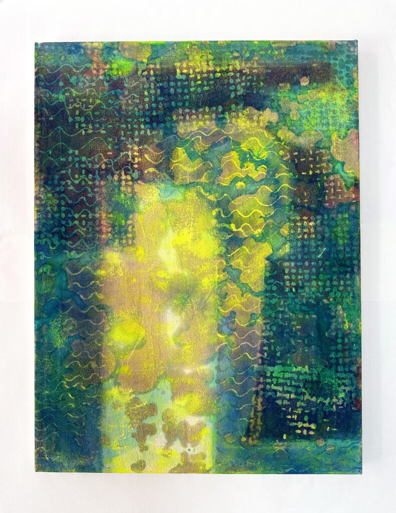 Hwang specialises in large-scale abstract paintings and has a process-led approach to her work. She enjoys finding coherence and balance between the order and disarray of this approach, resulting in organised chaos. Hwang’s colour palette is similarly spontaneous, with each painting’s colours being instinctively selected. The inspiration for her work is drawn from physical, sensory, emotional, and psychological experiences.