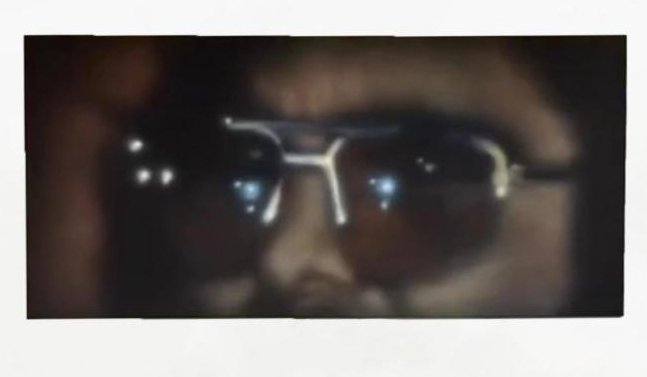 In the painting Learning to Fly the canvas is filled with a standing male figure in suites seen from behind. This scene, solemn as well as romantic, describes a man going out in a dark and desert night, where the moon is framed by the curtains that mark the border between the outside and a private space that the man is about to leave.