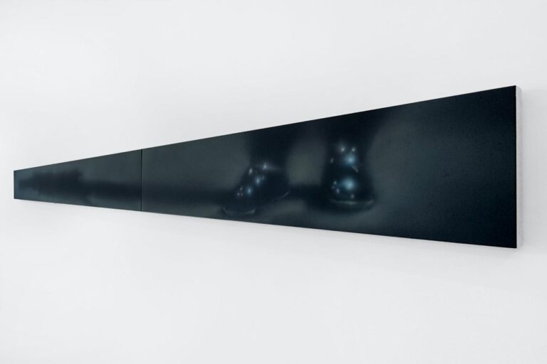 Stephen Buscemi’s acrylic paintings are mostly focused on the male bodies and faces, that often the artist depicts showing only details that hide the identity of the character/characters on the canvas. We can see hands playing piano or only a pair of shoes – one of the subjects that interests Buscemi a lot – without knowing who they belong to or where they are.